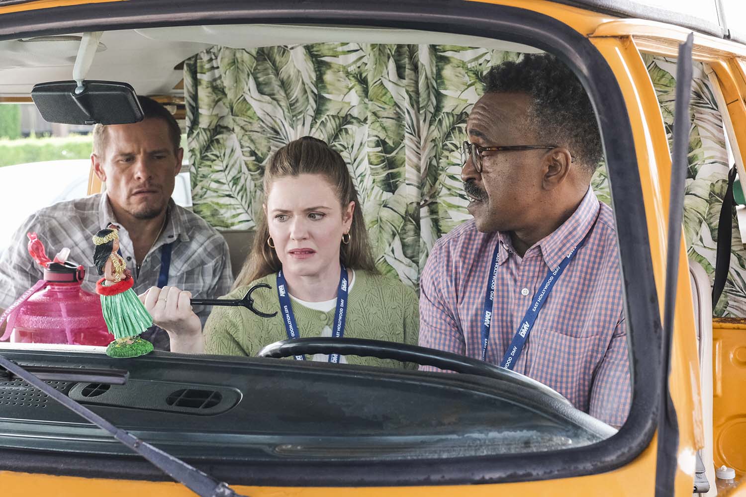 (l-r) Tony Cavalero as Vic, Harriet Dyer as Colette, and Tim Meadows as Gregg in DMV. ©CBS Broadcasting. CR: Bertrand Calmeau/CBS